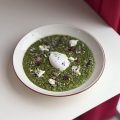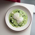 Frișcă, spanac, ou, mozzarella, ulei verde, pâine.